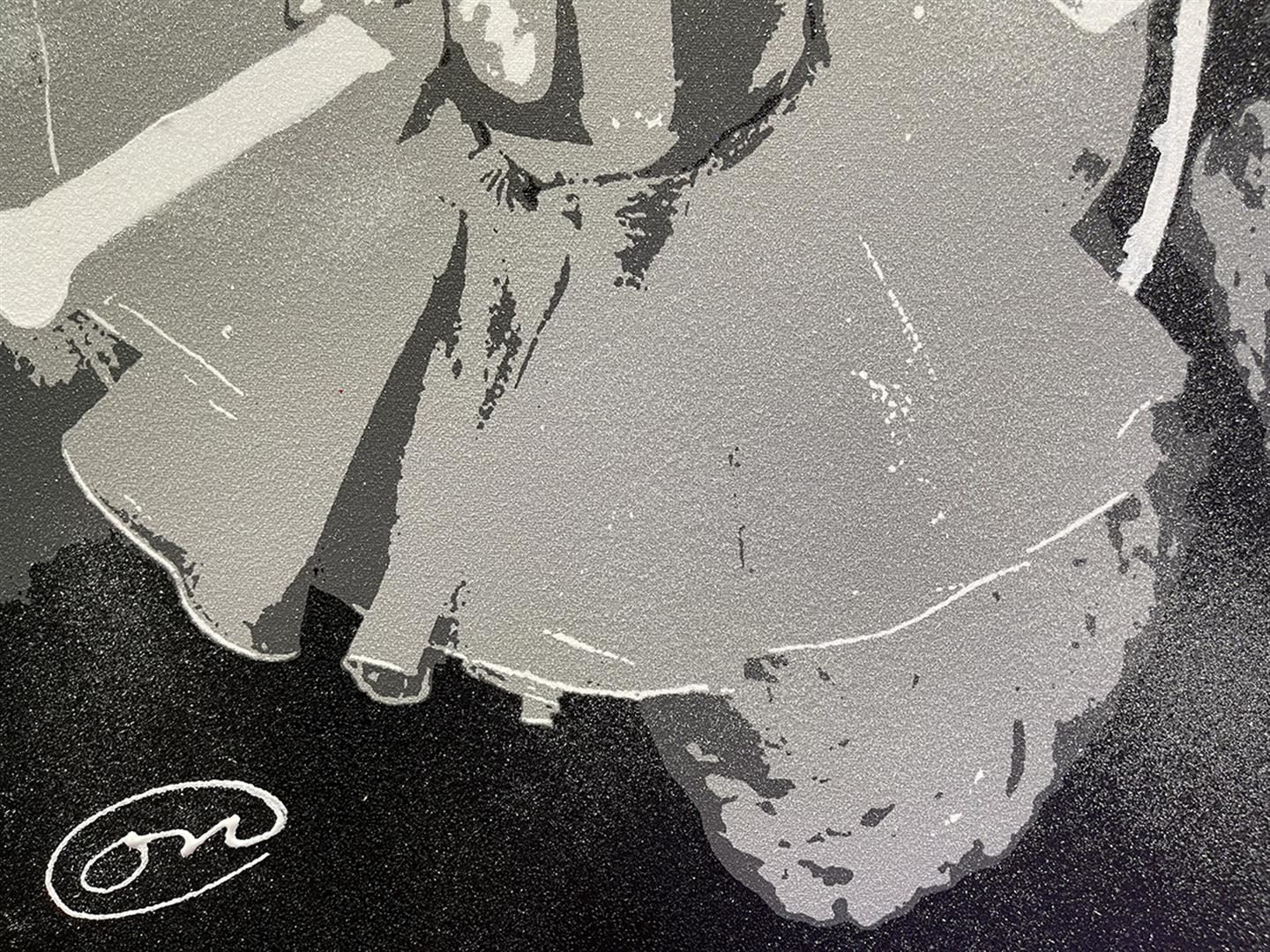 Eye-catching original mixed media with diamond dust on canvas. Hand signed by artist. This artwork comes gallery wrapped. 34x43
