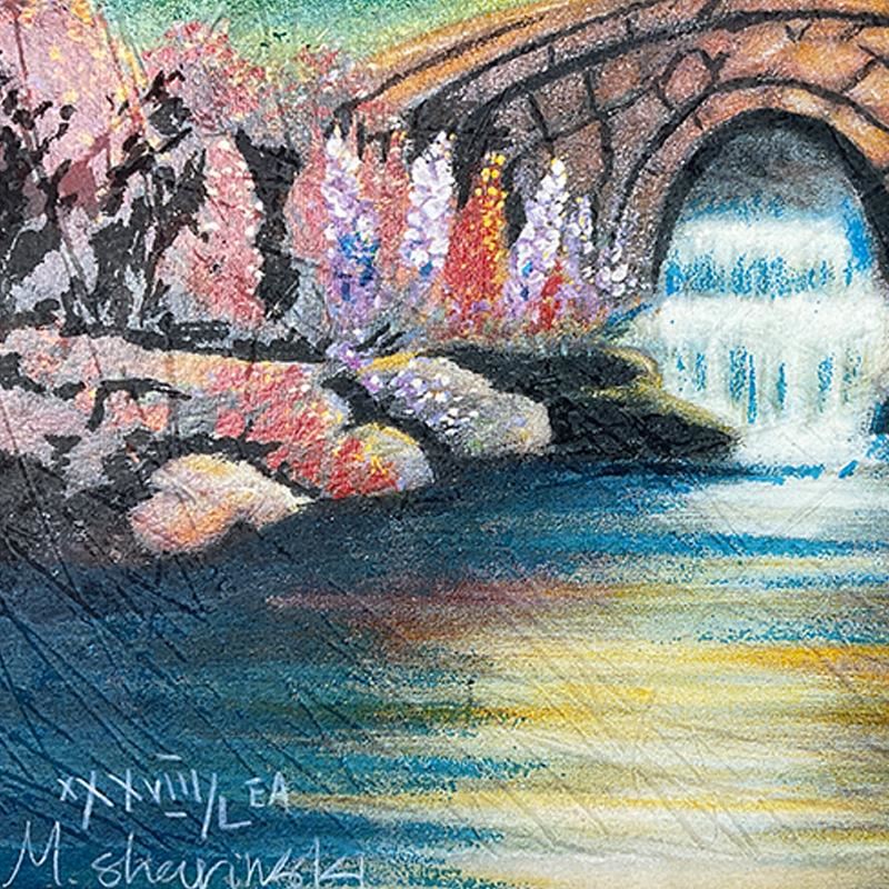 Becky's Cottage by Sharinski, Michael. "Becky's Cottage" is a limited edition mixed media on paper by Michael Sharinksi, numbered and hand signed by the artist. Includes Letter of Authenticity. Measures approx. 27" x 19.5" (image).