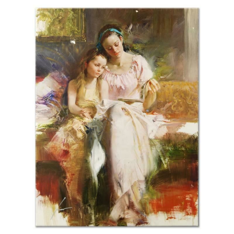 "Bedtime Stories" is an artist embellished limited edition giclee on canvas by Pino (1939-2010), AP Numbered and hand signed by the artist. Includes Certificate of Authenticity. Measures approx. 30" x 40" (image). This piece is not stretched.