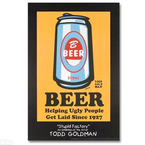 ADD THE IRREVERENT ARTWORK OF WORLD-RENOWNED ARTIST TODD GOLDMAN TO YOUR COLLECTION! Pop artist Todd Goldman is known all across the globe for his whip-smart and wickedly funny puns and pictures! "Beer: Helping Ugly People Get Laid Since 1927" is a fine art litho poster hand signed by Todd. Measures approx. 24" x 36" (poster).