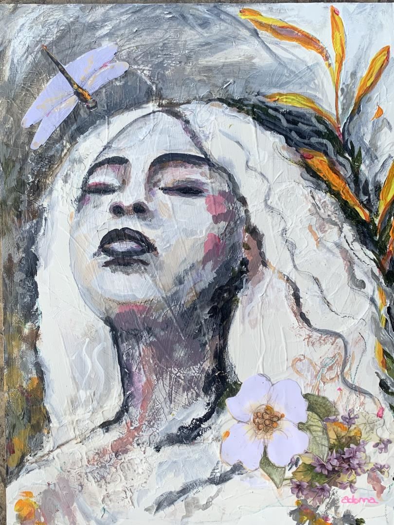 An original mixed media art by Adonna 11 x 14 on panel board w/COA