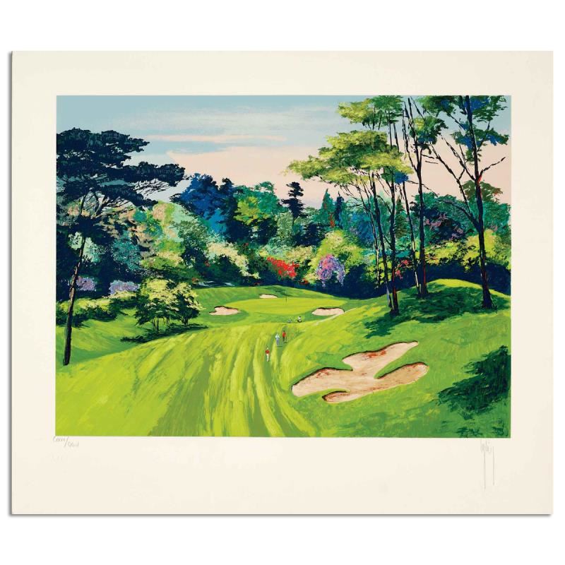 "Bel Air #6 (4 Up Golf)" is a limited edition serigraph on paper by Mark King (1931-2014). Hand signed and numbered this piece comes with a letter of authenticity and measures approximately 15" x 20" (image).