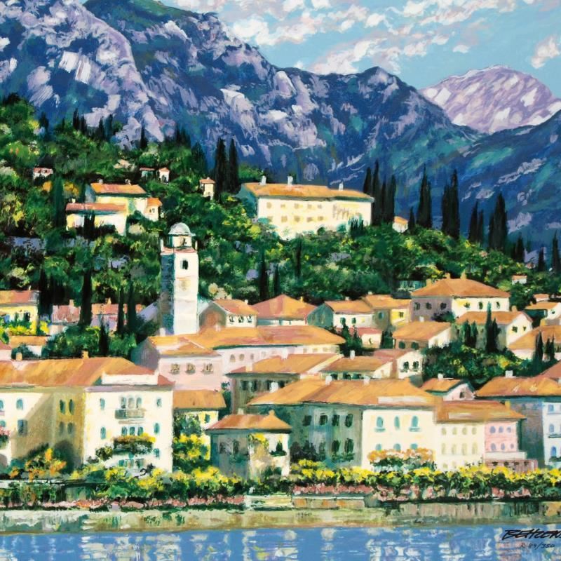 "Bellagio Hillside" is a limited edition serigraph on paper, numbered and hand signed by Howard Behrens (1933-2014). Includes Certificate of Authenticity! Measures approx. 38" x 27" (with border), 30" x 23.5" (image).
