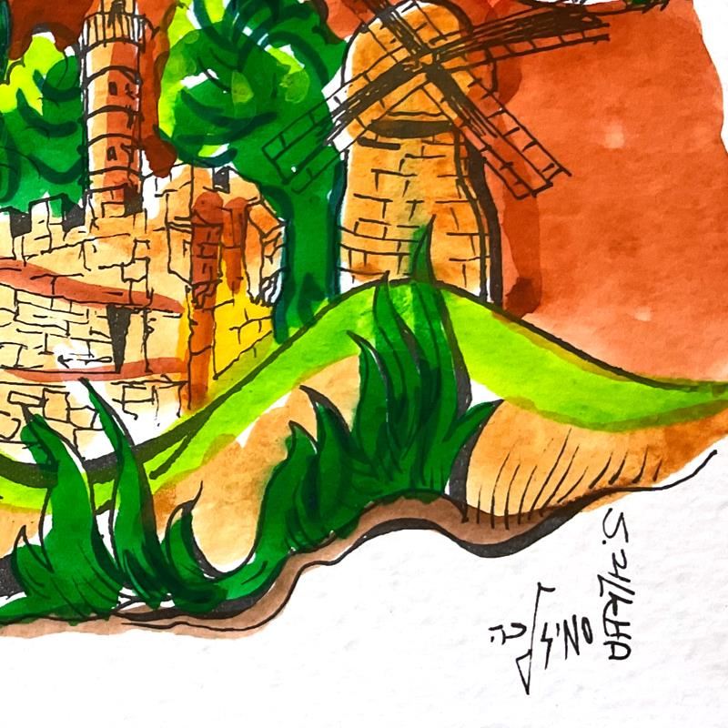 Beloved Jerusalem (Purple) by Zilkha Original. "Beloved Jerusalem" is a one-of-a-kind hand watercolored mixed media on paper by Sami Zilkha, hand signed by the artist. Includes Letter of Authenticity. Measures approx. 19" x 9" (border), 9.5" x 15" (image).