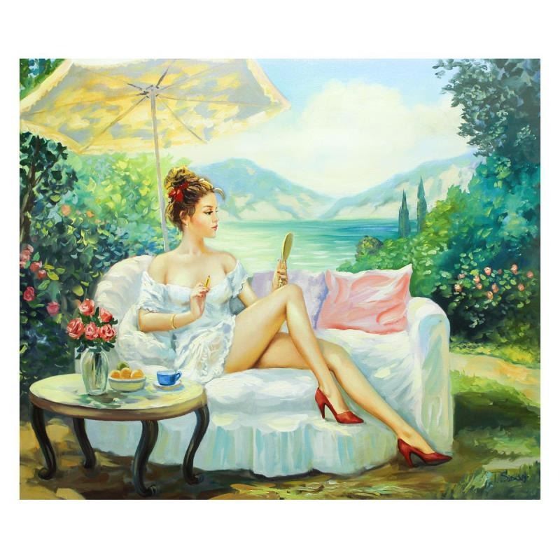 "Benita" is a limited edition giclee on canvas by Taras Sidan. Numbered and hand signed, this piece is accompanied by a letter of authenticity. Measures approximately 24" x 30"
