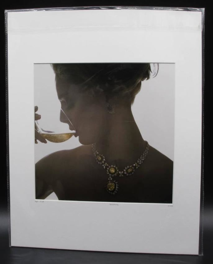 Champagne Certified Photograph, Bert Stern YellowKorner Certified Photograph. Certificate of Authenticity from YellowKorner affixed to the back. Matted Dimensions 16"x20". Protected with Clear Mylar Sleeve.