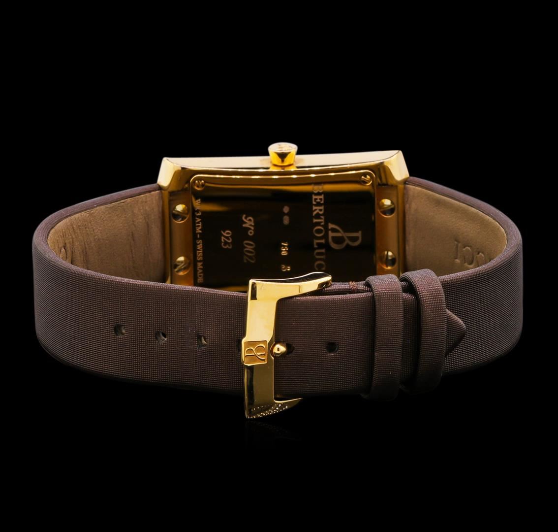 One Bertolucci watch featuring: Case: 18KT rose gold set with diamonds. Dial: Brown color. Bracelet: Bertolucci strap with 18KT rose gold buckle clasp.