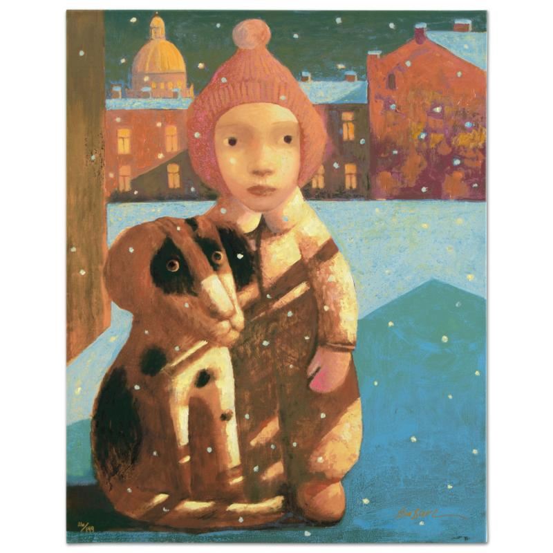 Sasha Bassari - "Best Friends" is a limited edition hand embellished serigraph on gallery wrapped canvas, numbered and hand signed by the artist! Includes Certificate of Authenticity! Measures approx. 26" x 33" (image).