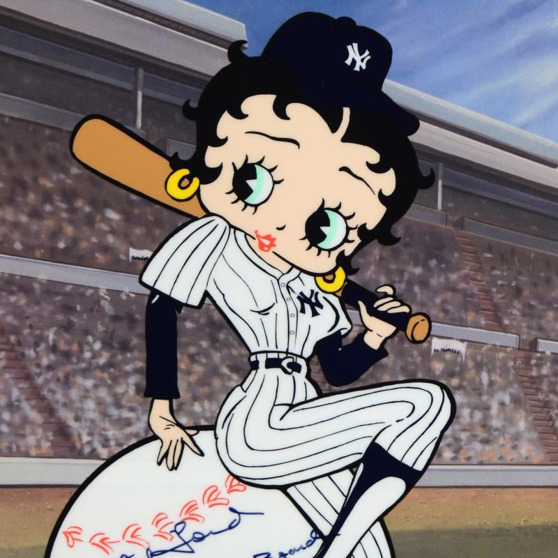 "Betty on Deck - Yankees" is a limited edition sericel with background from King Features Syndicate, Inc, numbered and autographed by hall of fame MLB pitcher, Whitey Ford! This piece bears King Features' official seal. Includes Certificate of Authenticity! Measures approx. 13" x 17" (background), 11" x 14" (cel).