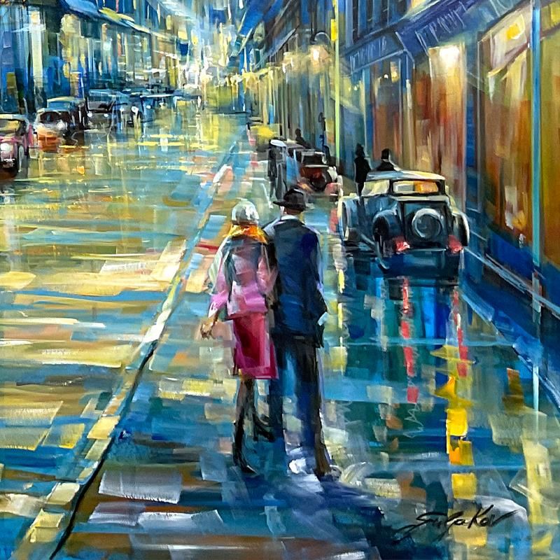 Big City Dreams by Suljakov Original. All available information is listed in the description and shown in the photo. "Big City Dreams" is an original oil painting on stretched canvas by Vadik Suljakov, hand signed by the artist. Includes Letter of Authenticity. Measures approx. 40" x 30" (image).