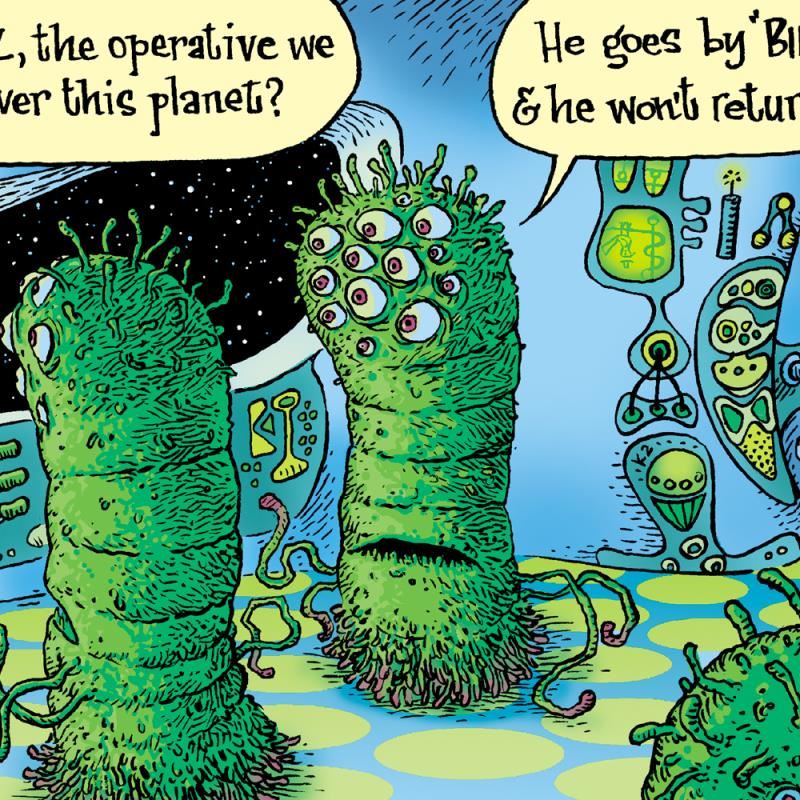 "Bill Gates Aliens" is a limited edition giclee on paper by Dan Piraro, creator of the critically acclaimed and award winning comic strip, Bizarro! This piece is numbered and hand signed by the artist and includes aletterof authenticity. Measures approximtely 8" x 15" (image).