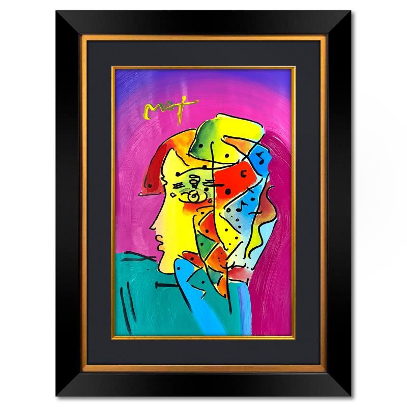 "Billboard Centenial" is a one-of-a-kind mixed media on paper, hand signed by Peter Max. The piece comes custom framed with a backside cutout to display Peter Max Studio registration number 276695 certifying authenticity. Measures approximately 48" x 36" (frame), 36" x 24" (image).