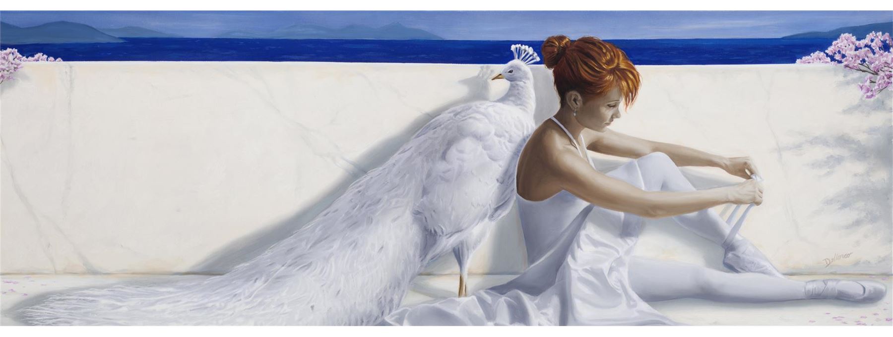 This magnificent Showpiece reminds us of the strangely sexual "Women and Bird" couplings of the great Rennaissance artists. A 48x16" image , it will look stunningly beautiful in a classic black moulding.