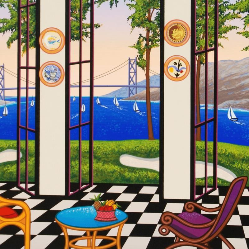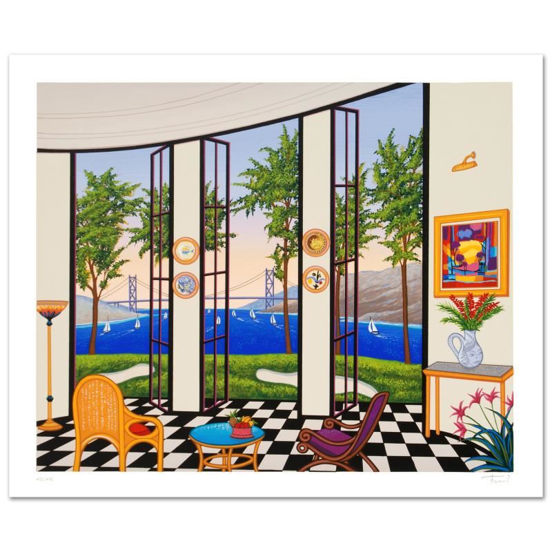 "Black and White Interior" is a limited edition serigraph on paper, numbered and hand signed by Fanch Ledan. Includes Certificate of Authenticity! Measures approx. 23" x 19.5" (with border), 20.5" x 17" (image).
