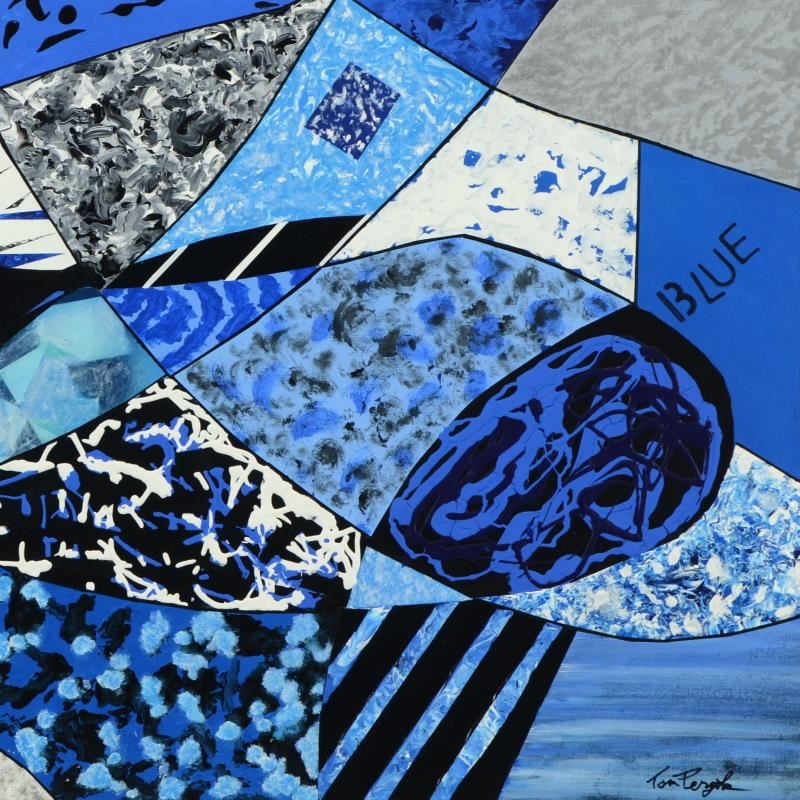 "Black, Blue and White" is an original mixed media on canvas by Tom Pergola, hand signed by the artist. This piece comes gallery wrapped. Includes Letter of Authenticity. Measures approx. 40" x 30" (image).