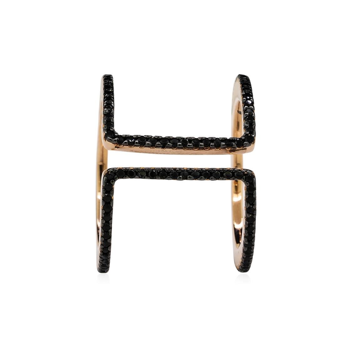 High end designer jewelry. Black Double CZ Circle Ring - Rose Gold Plated. Rose Gold Pltd- Silver925. Black/ Rose. 6. Total Weight: 4.8 grams.