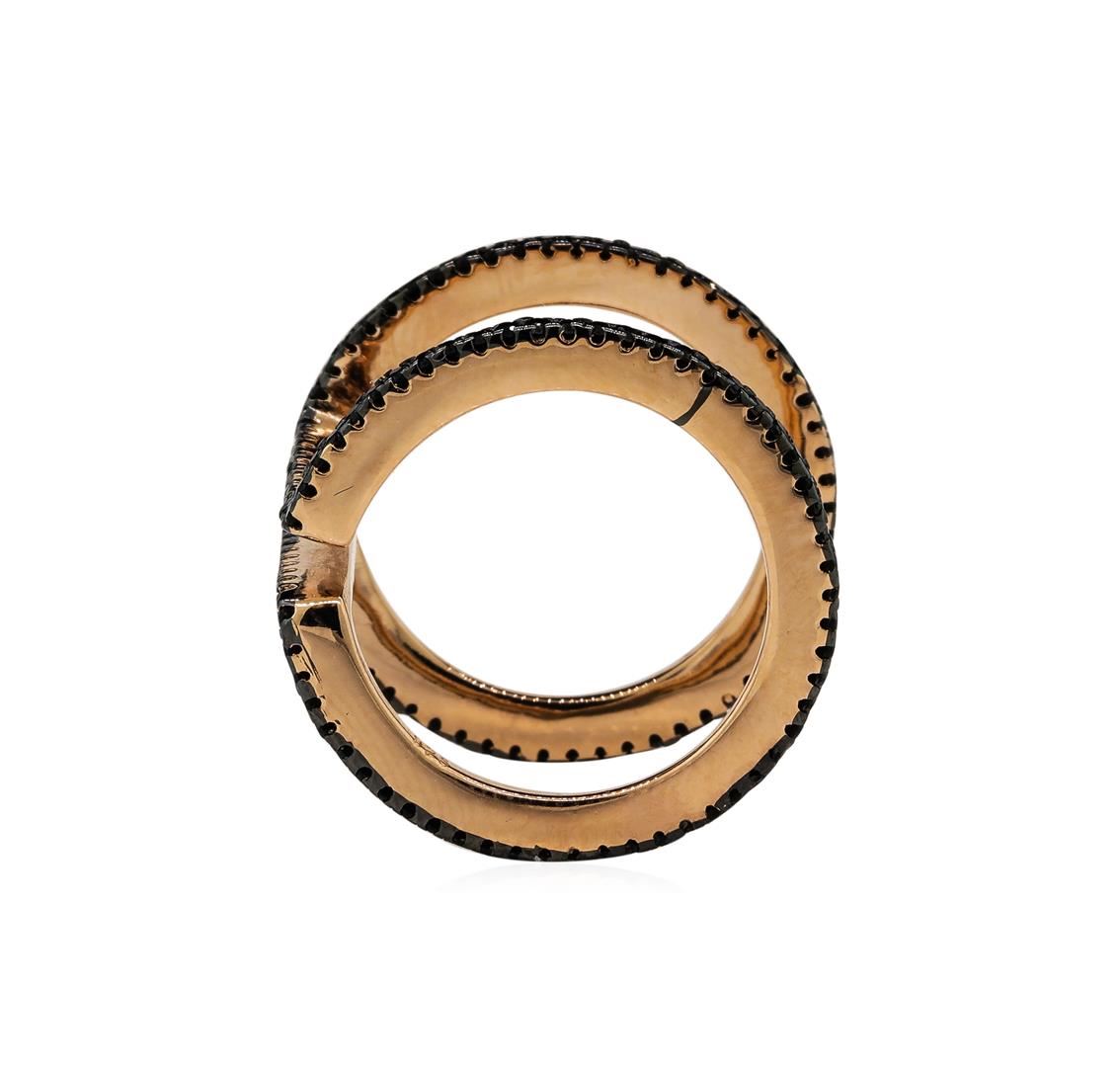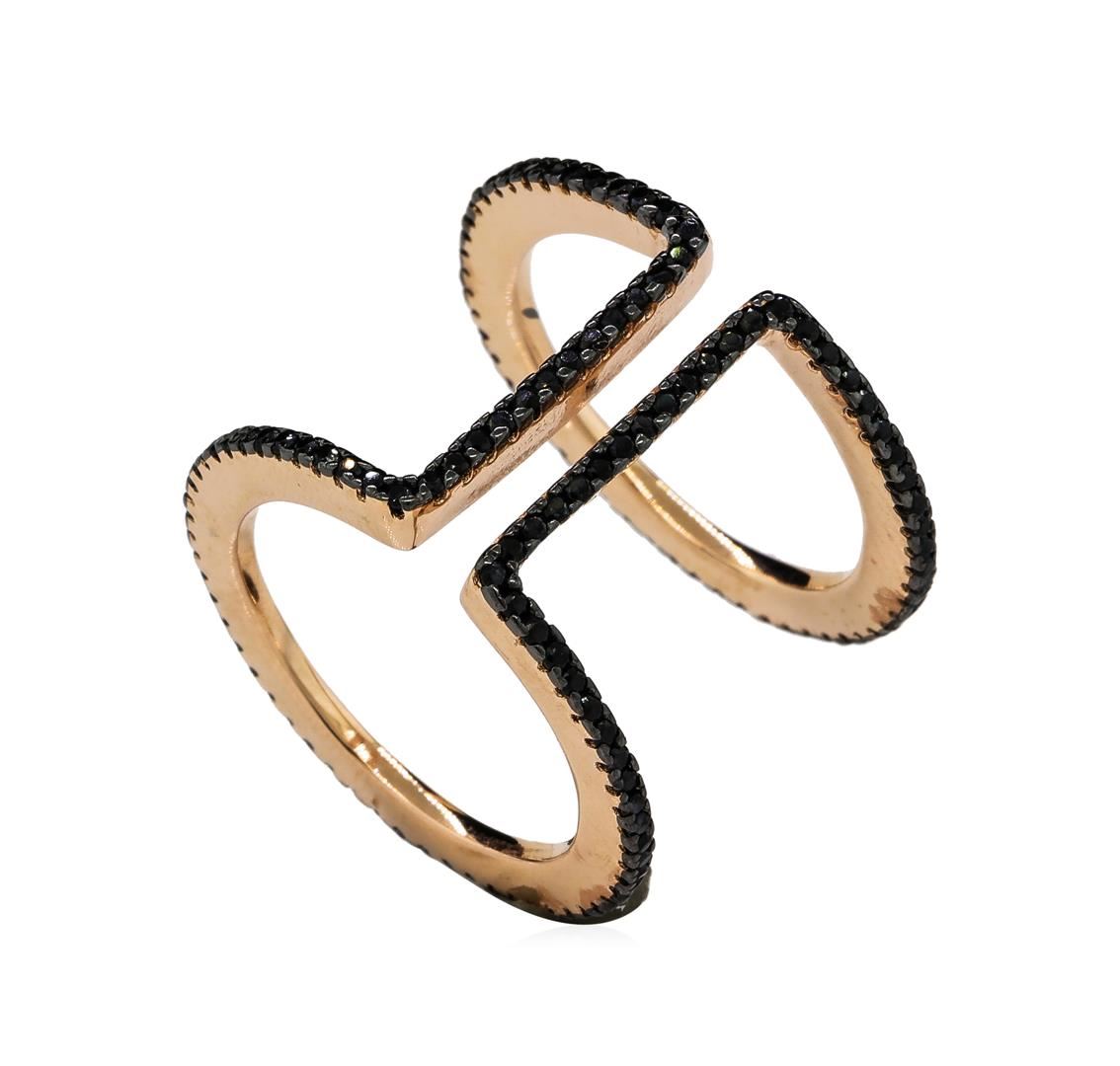 High end designer jewelry. Black Double CZ Circle Ring - Rose Gold Plated. Rose Gold Pltd- Silver925. Black/ Rose. 6. Total Weight: 4.8 grams.