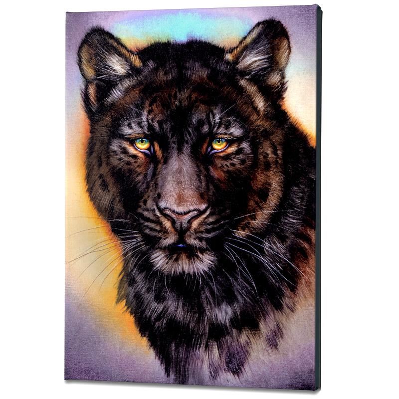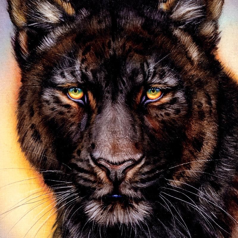 "Black Phase Leopard" is a limited edition giclee on gallery wrapped canvas by Martin Katon, numbered and hand signed by the artist! This piece is gallery wrapped and ready to hang! Includes Certificate of Authenticity! Measures approx. 16" x 24" (image).