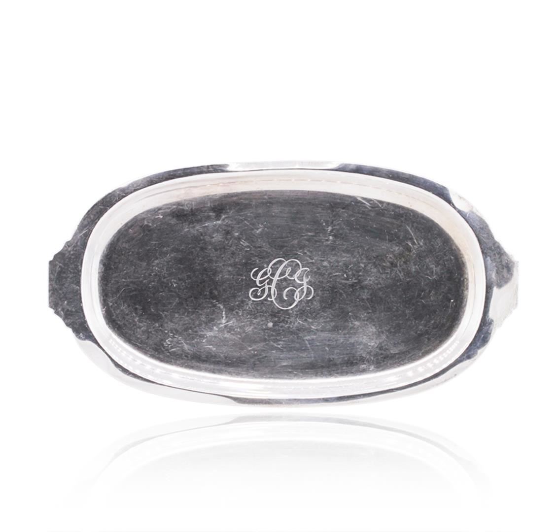 A Black Starr & Frost sterling silver serving tray. Measures 9.5 x 5 inches with a total of 167 grams of silver. Monogrammed GCJ.