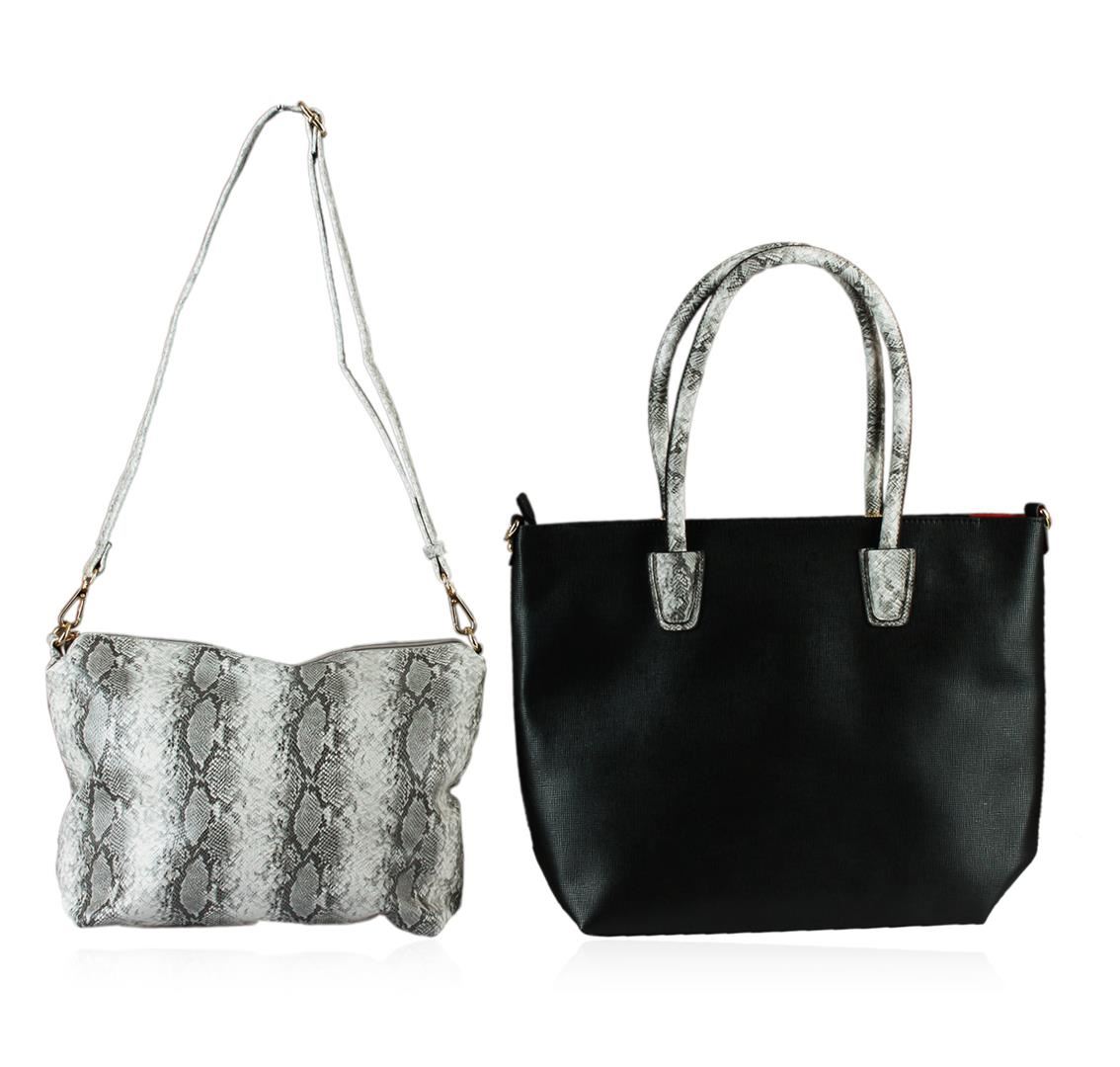 A Beautiful Black and Silver Textured Classic Handbag.