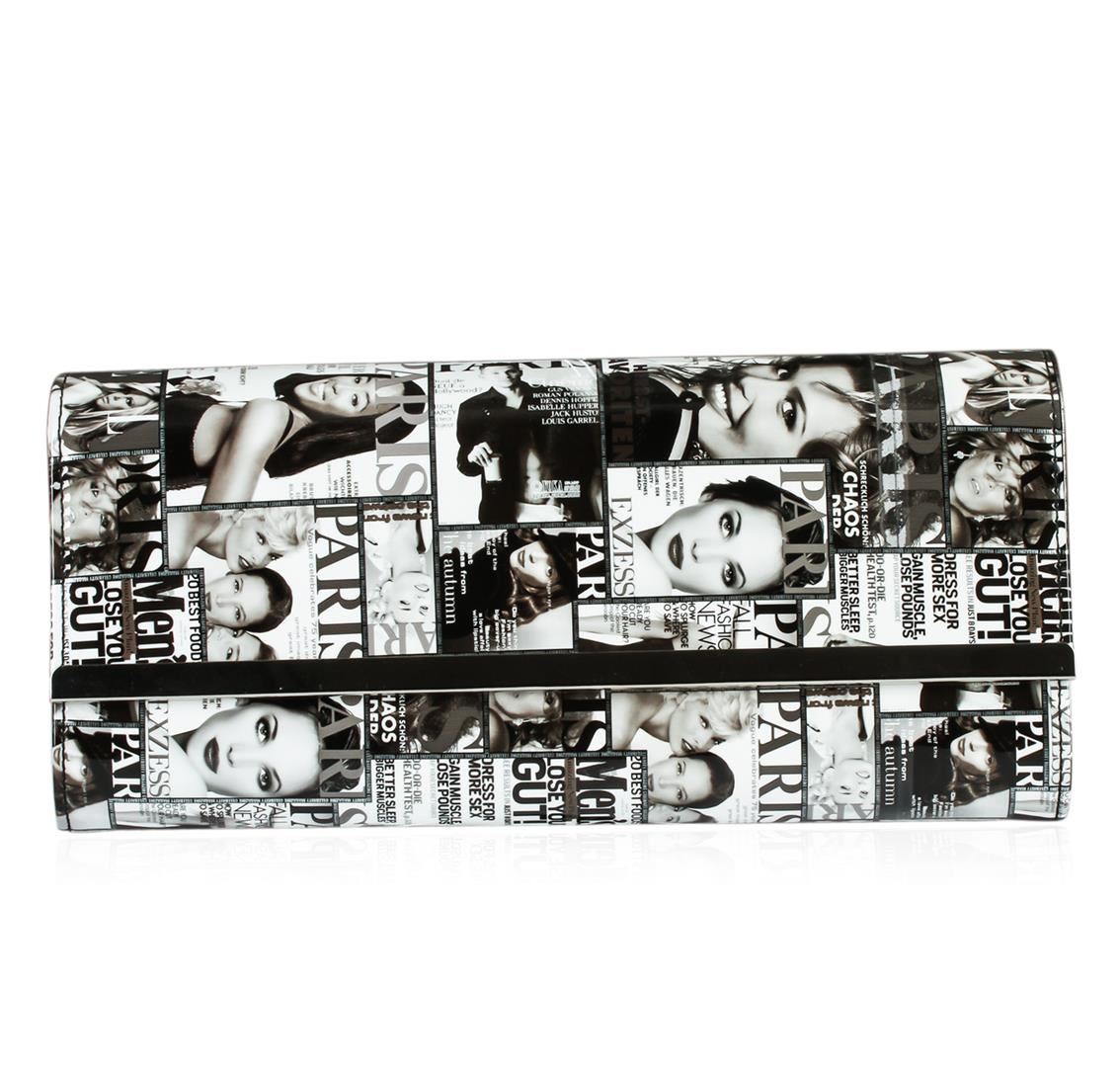 A Beautiful Black and White Fashionista Patent Oversized Evening Clutch.