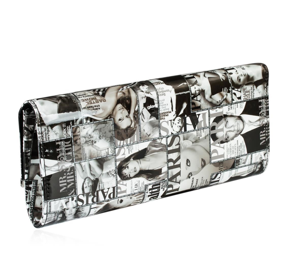 A Beautiful Black and White Fashionista Patent Oversized Evening Clutch.