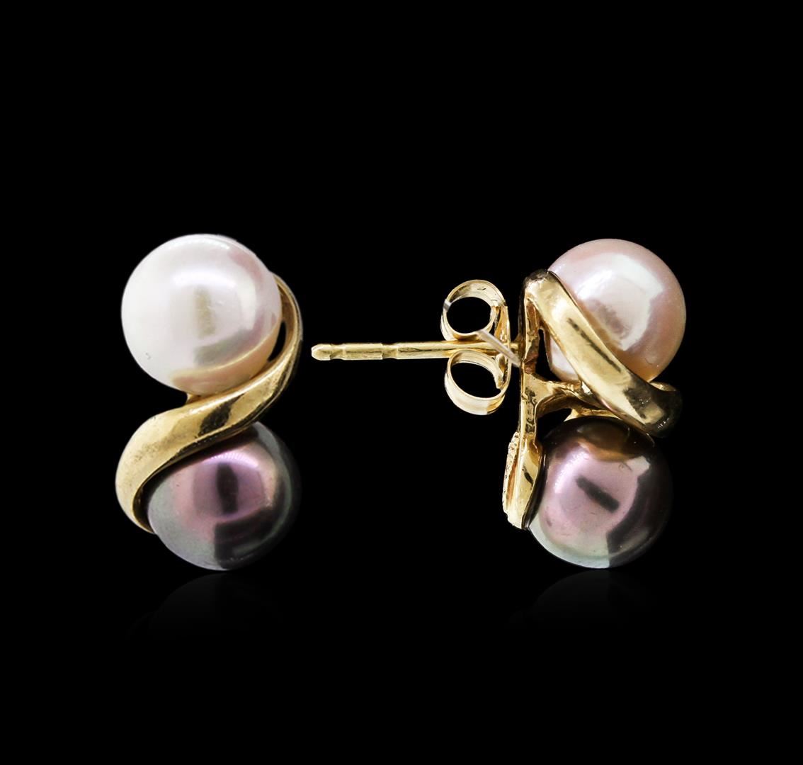 Black and White Pearl Earrings - 14KT Yellow Gold. 3.6 grams total weight; 4 pearls.