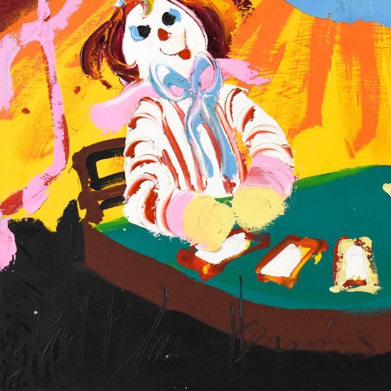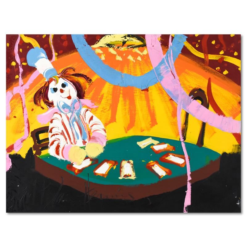 "Blackjack Beats 21" is an original oil painting on stretched canvas by Paul Blaine Henrie (1932-1999). The piece is hand signed by the artist and comes with a letter of authenticity. Measures approximately. 30" x 40" (image). ** Please note: there is a small chip in the paint on the bottom-right corner of the image. There is also minor wear on the corners and edges. **