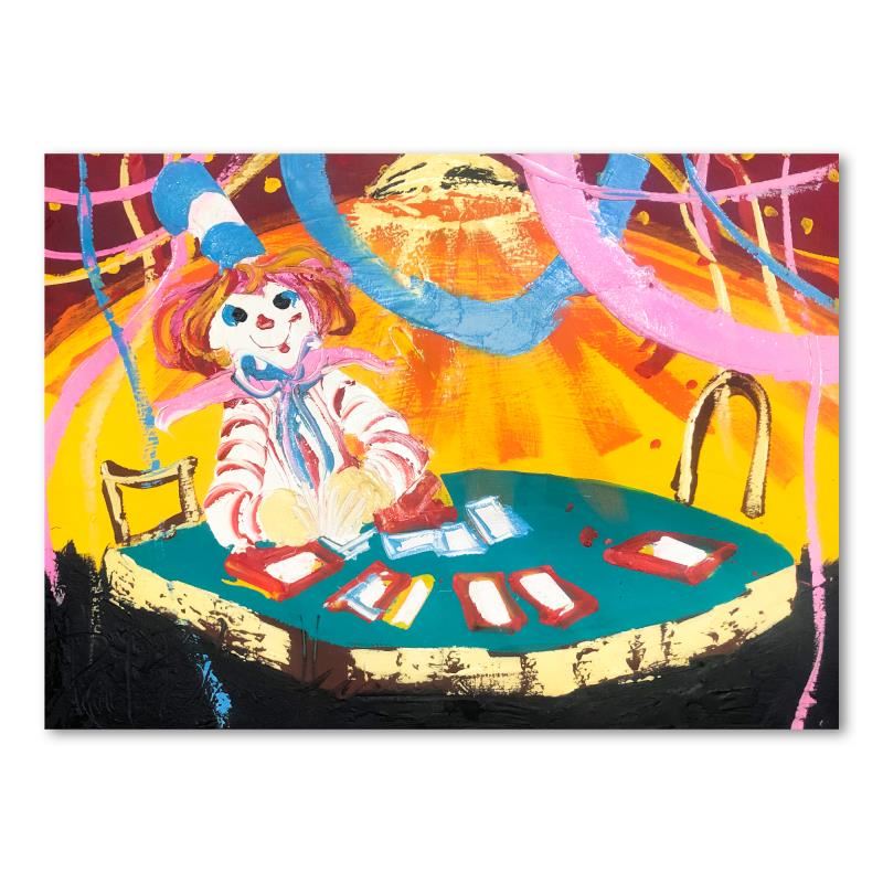 "Blackjack Beats 21" is an original oil painting on stretched canvas by Paul Blaine Henrie (1932-1999). The piece is hand signed by the artist and comes with a letter of authenticity. Please note that due to the age of this piece and the way it was stored, there are minor sings of wear, particularly on the corners and edges. Measures approximately. 30" x 40" (image).