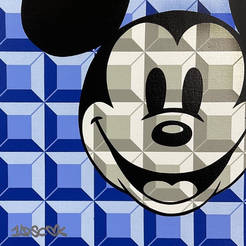 "Blue 8-Bit Mickey" is a limited edition giclee on canvas by Tennessee Loveless, numbered and hand signed by the artist. This piece is licensed by Disney Fine Art. Includes Letter of Authenticity. Measures approx. 12" x 12" (image).