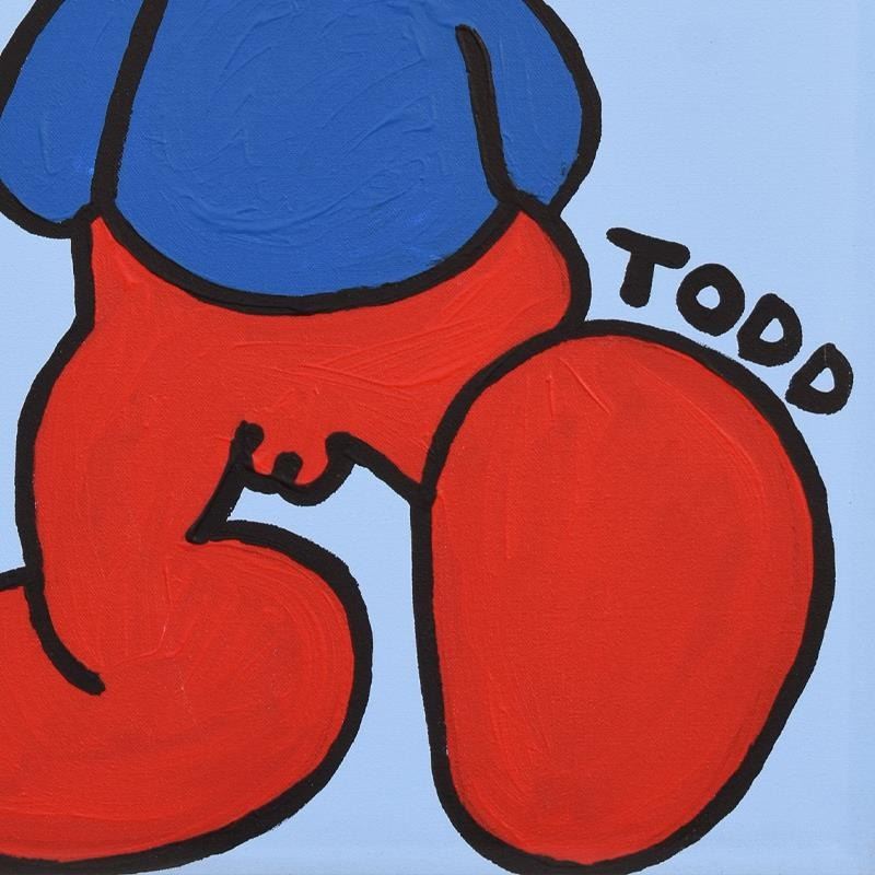 "Blue Balls" is an original acrylic painting on gallery wrapped canvas by Todd Goldman, hand signed by the artist. Includes Letter of Authenticity. Measures approx. 24" x 36" (image). Due to the way this piece was stored there may be minor wear or signs o