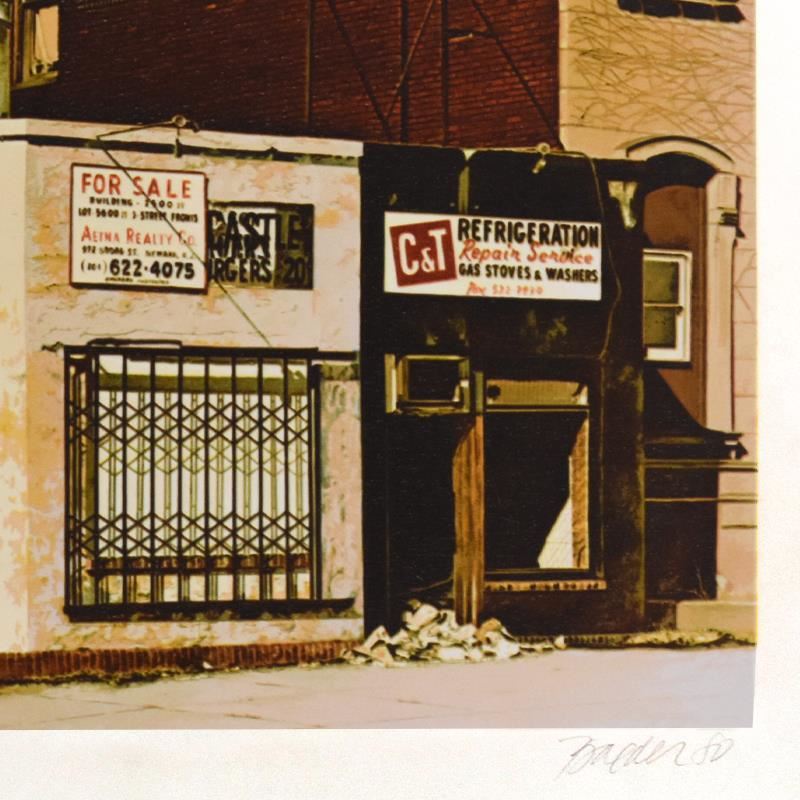 "Blue Beacon" is a limited edition silkscreen on somerset paper by John Baeder, numbered and hand signed by the artist. Includes Letter of Authenticity. Measures approx. 30" x 22" (border); 25.5" x 16.5" (image). Due to the age of this piece there may be very minor wear on the corners that may be concealed when the piece is framed.