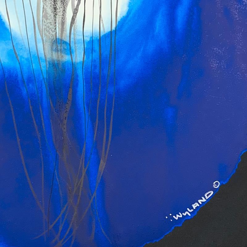"Blue Jellyfish Rising" is an original painting, watercolor on deckle edge paper by Wyland. Hand signed by the artist, the piece comes custom framed and with a letter of authenticity. Measures approximately 30" x 30" (framed), 19.5" x 19.5" (image).