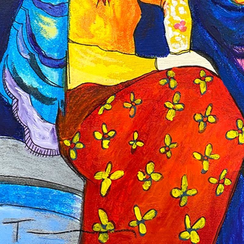 "Blue Mood" is a one-of-a-kind mixed media over paint on wood by Itzchak Tarkay (1935-2012), hand signed by the artist. Includes Letter of Authenticity. Measures approx. 11" x 8" (image).