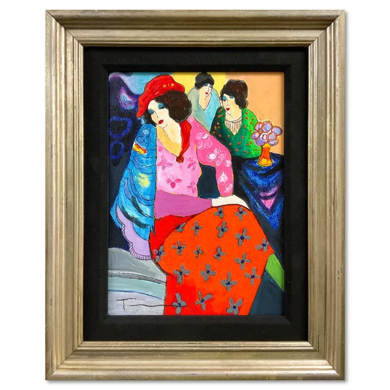"Blue Mood" is a one-of-a-kind mixed media over paint on wood by Itzchak Tarkay (1935-2012), hand signed by the artist. This piece comes custom framed. Includes Letter of Authenticity. Measures approx. 15.5" x 12.5" (frame), 11" x 8" (image).