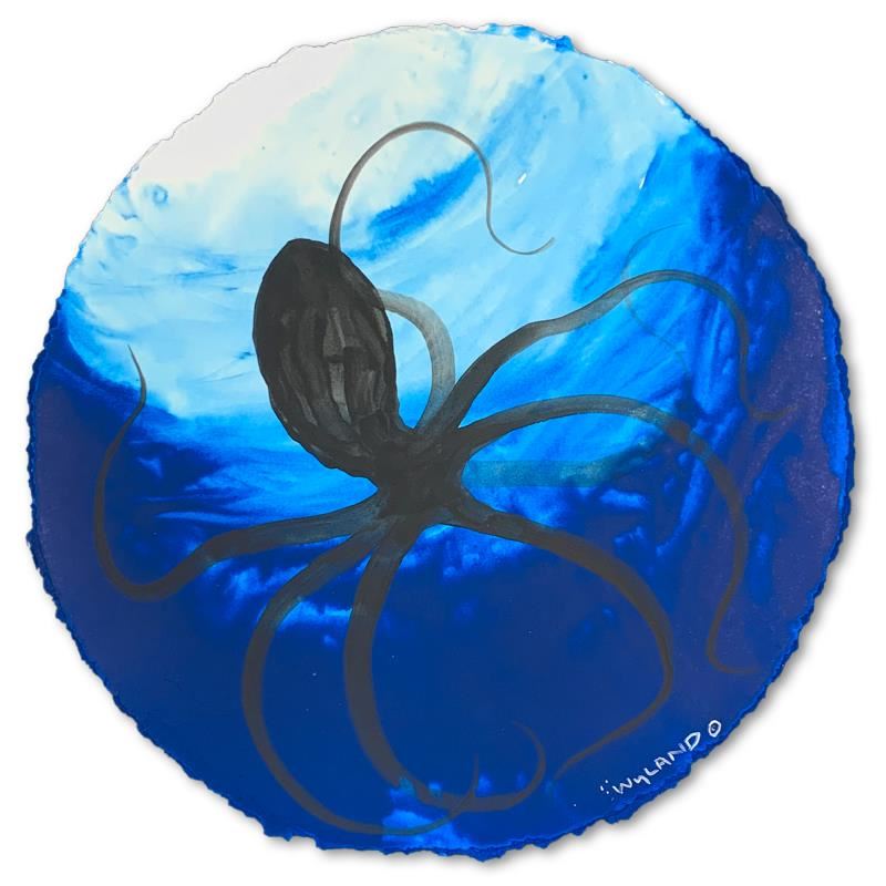 "Blue Octopus Swirl" is an original painting, watercolor on deckle edge paper by Wyland. Hand signed by the artist, the piece comes custom framed and with a letter of authenticity. Measures approximately 30" x 30" (framed), 19.5" x 19.5" (image).