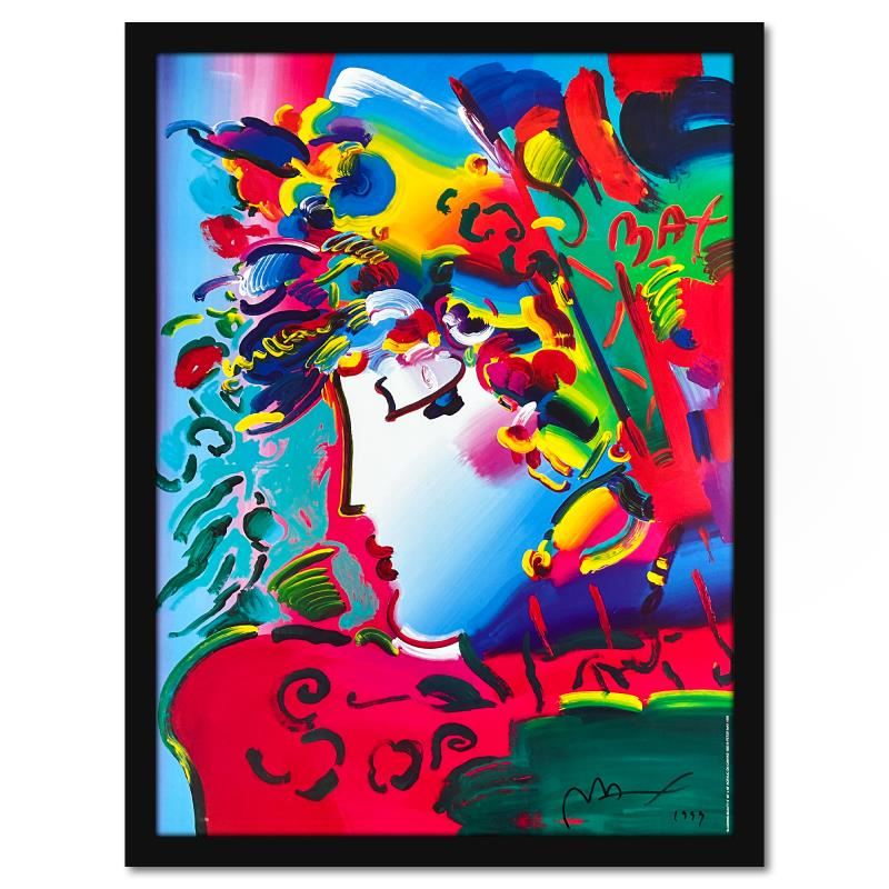 "Blushing Beauty" is an offset lithograph on paper by Peter Max, hand signed by the artist. This piece comes custom framed. Includes Letter of Authenticity. Measures approx. 36.5" x 27.5" (frame), 32.5" x 23.5" (image).