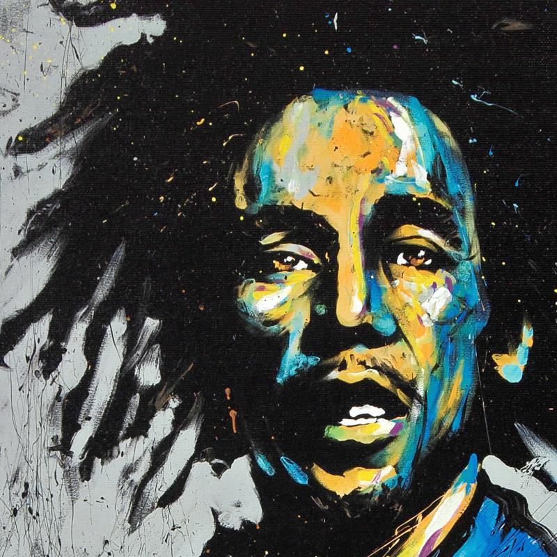 Combining his passions for music and art, David Garibaldi creates stunning visual poetry. "Bob Marley (Redemption)" is a limited edition giclee on stretched canvas, numbered and bearing the artist's authorized signature. This piece is gallery wrapped and ready to hang. Includes Certificate of Authenticity! Measures approx. 18" x 24" (image).