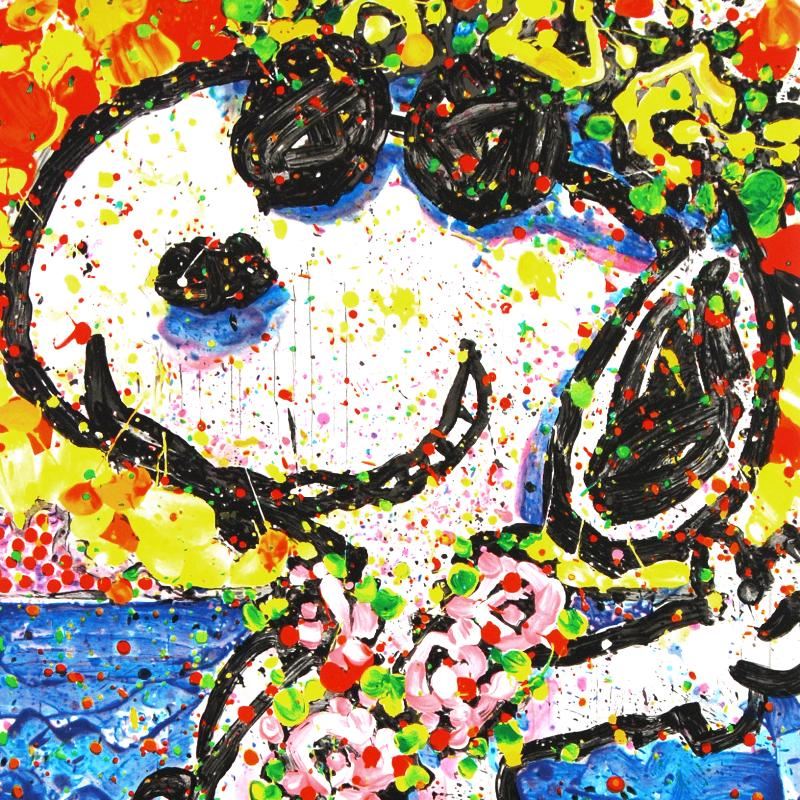 Master Artist Tom Everhart is the protege of famed "Peanuts" creator, Charles M. Schulz (1922â€"2000). As the only artist in the world granted the rights to draw the "Peanuts" characters in his own work, Everhart creates vibrant, extremely collectible rainbow masterpieces featuring Snoopy, Woodstock and the gang. "Boom Shaka Laka Laka" is a limited edition hand pulled original lithograph on museum quality deckle-edge paper, numbered and hand signed by Everhart! Includes Certificate of Authenticity! Measures approx. 31" x 44" (with border); 25.5" x 38.5" (image). This artwork was created on one of two rare antique Marinoni Voirin lithograph presses that date back to the 1800's, and are reputed to come from the Paris print shop used by Henri Toulouse-Lautrec. There are only 7 of these magnificent beasts left in the world: the smaller one (with a print bed size of 25" x 35"), weighs 9 tons, and the larger one weighs in at 11 tons (print bed size 31" x 47"). The significance of this is that the lithographs produced by this method are of the finest quality, using techniques that are so labor and time intensive that very few master printers know how to operate and care for these presses today. Each lithograph is created with hand-mixed colors applied one at a time - a highly trained and synchronized team must hand feed each museum-quality sheet of paper through the press numerous times in order to set the colors and impressions, while the Chromist - a trained color specialist - adjusts each color by look and feel to match the original artwork, as if mixing a potion. The result is an image with maximum pigment saturation, formed through rich layers of color that imbue the artwork with a permanency of brilliance - proven over centuries to last. In contrast, today's printers use a method more akin to a dot matrix style application, with the colors all premixed and sprayed onto a sheet in a uniform layer, resulting in a much less saturated image that is susceptible to fading and imperfect color reproduction. This is one of the final Tom Everhart editions to be printed using this very special technique.