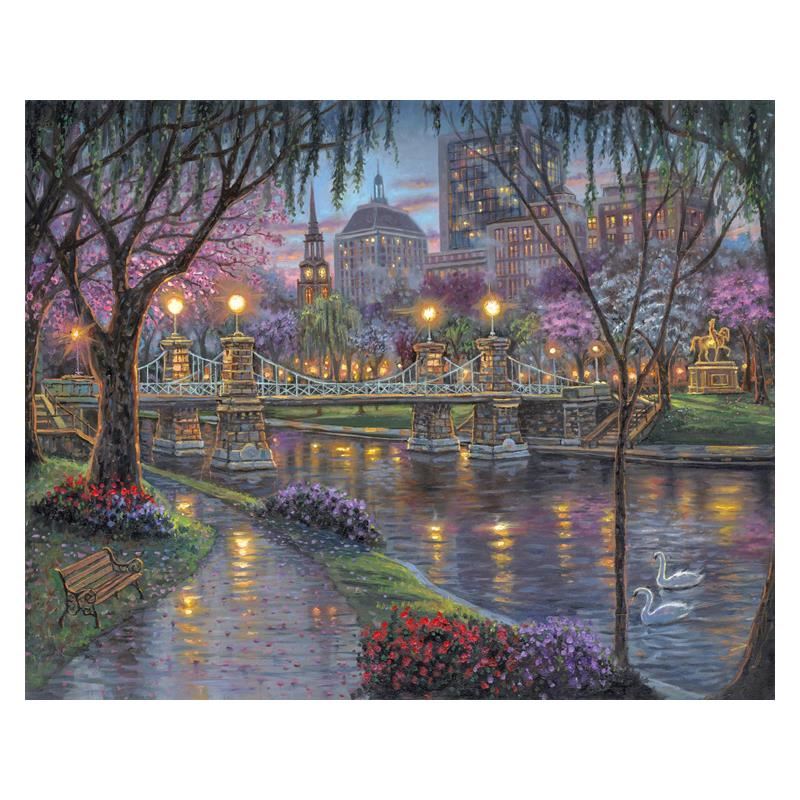 "Boston Lagoon Bridge" is an artist embellished limited edition giclee on stretched canvas by Robert Finale. The piece is hand signed, numbered SN 1/15, and comes with a certificate of authenticity. Measures approximately 18" x 24".