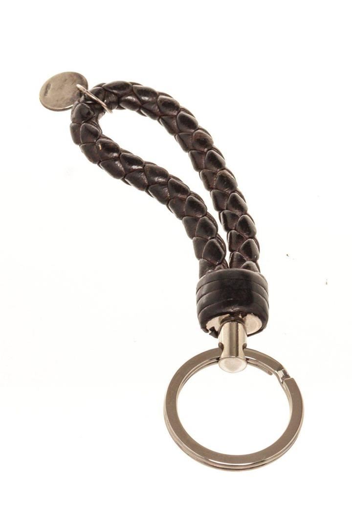 Bottega Veneta Black Leather Intrecciato Key Holder Bag with leather, gold-tone hardware and push lock closure.