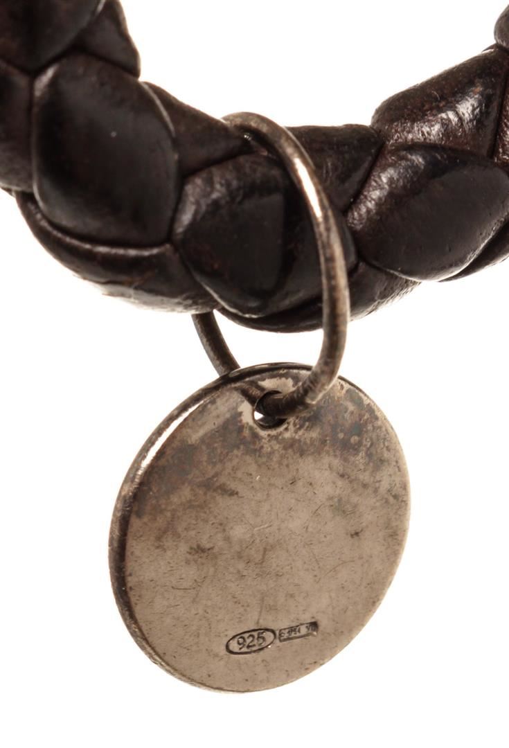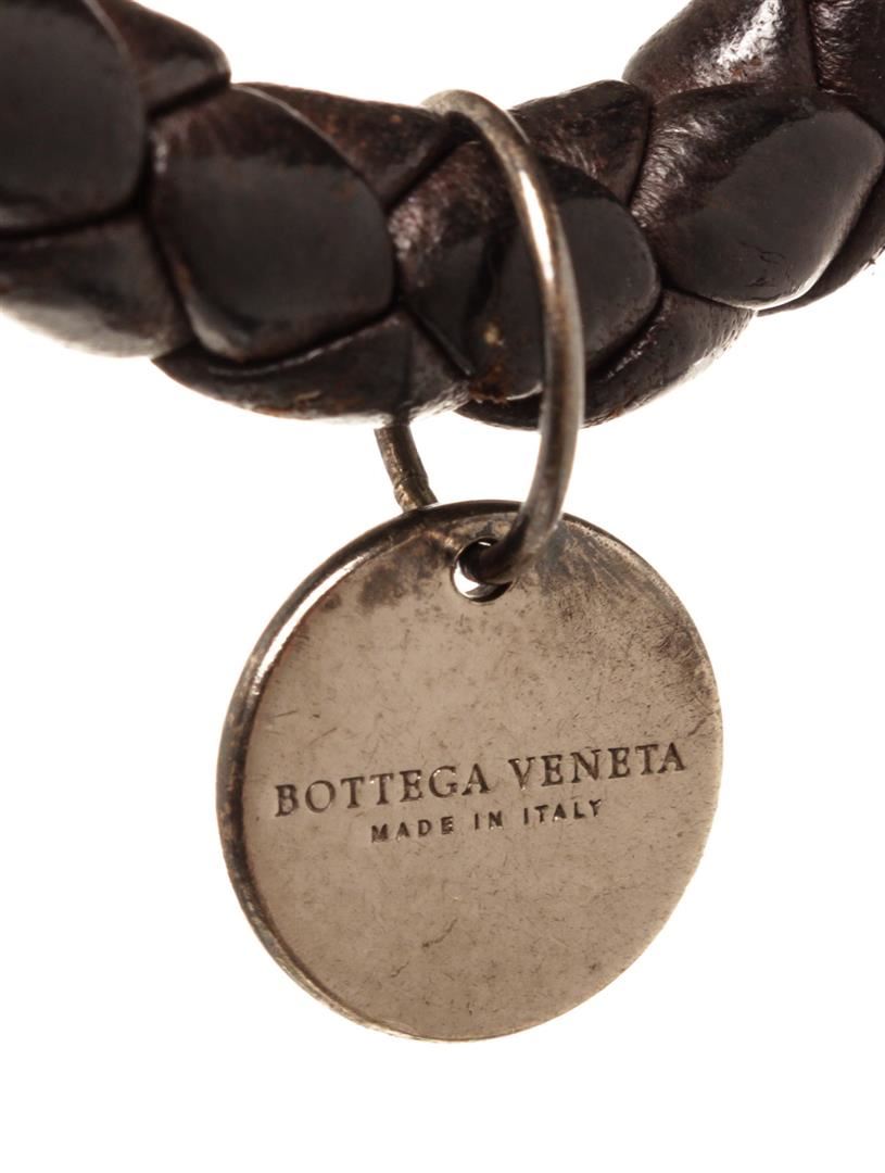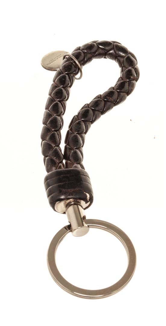 Bottega Veneta Black Leather Intrecciato Key Holder Bag with leather, gold-tone hardware and punh lock closure.