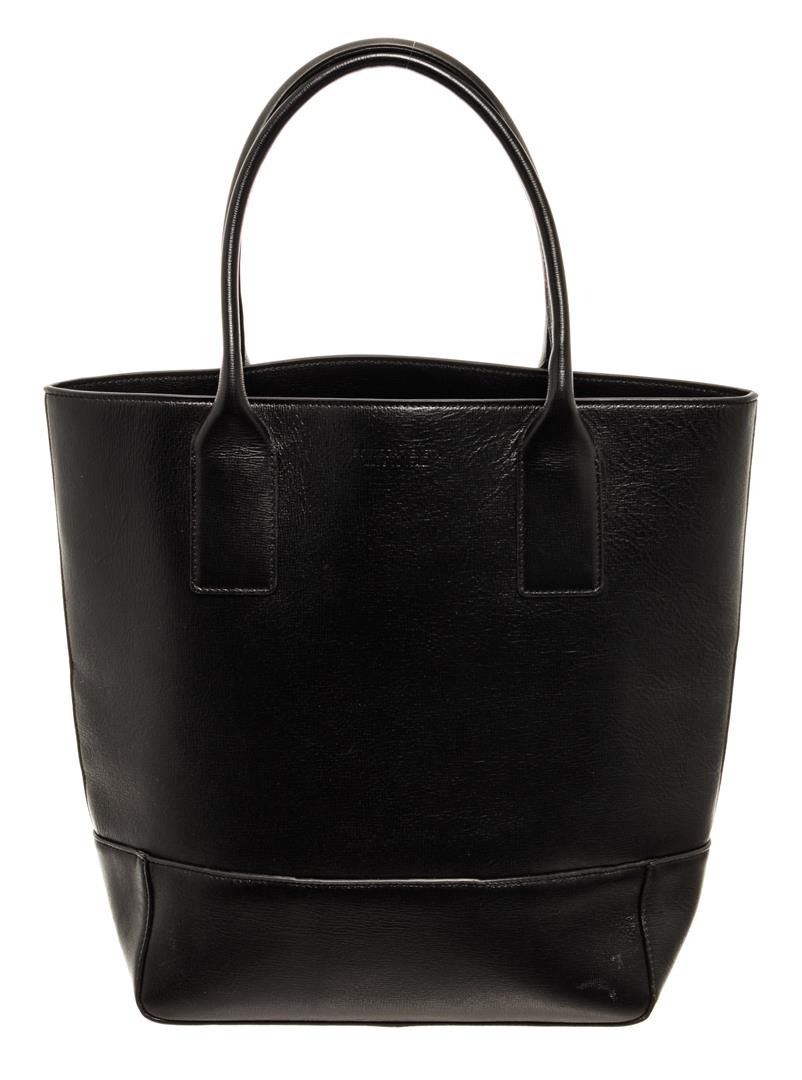 Bottega Veneta Black Leather Open Tote Bag. All available information is listed in the description and shown in the photos. Bottega Veneta Black Leather Open Tote Bag with silver-tone hardware, stitch leather trim, black canvas lining, dual interior slip pockets, dual rolled leather top handles, and zip closure at the top. .