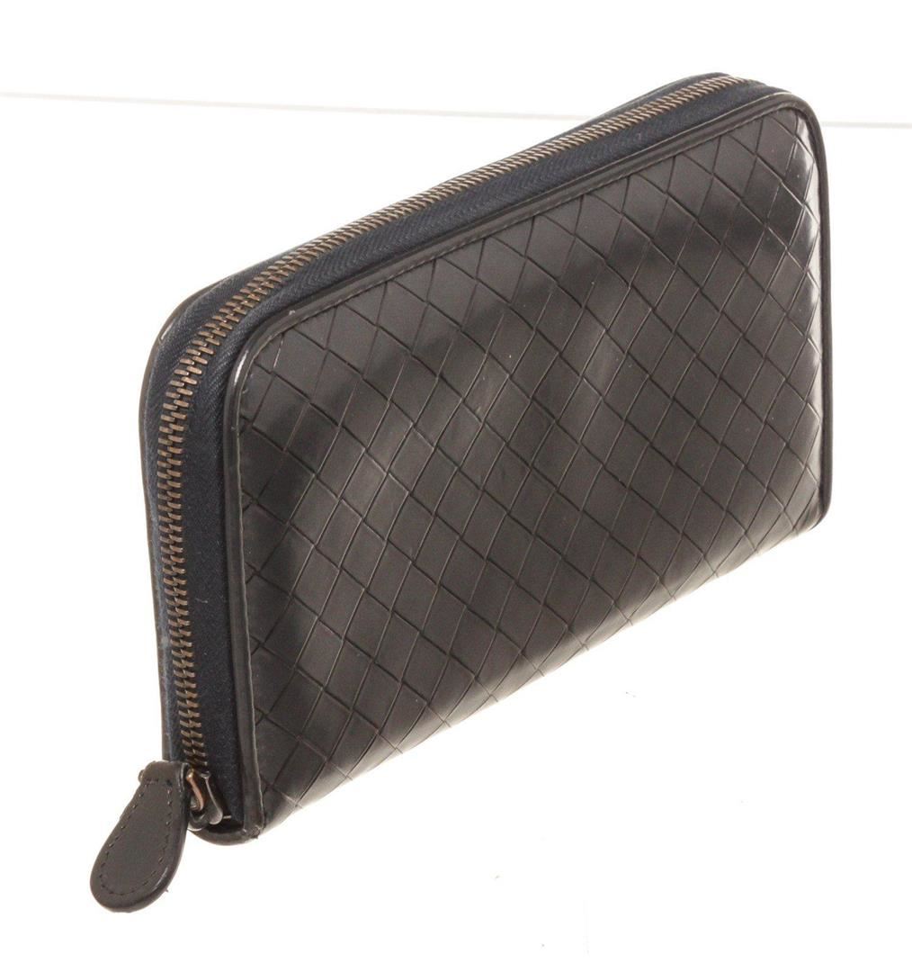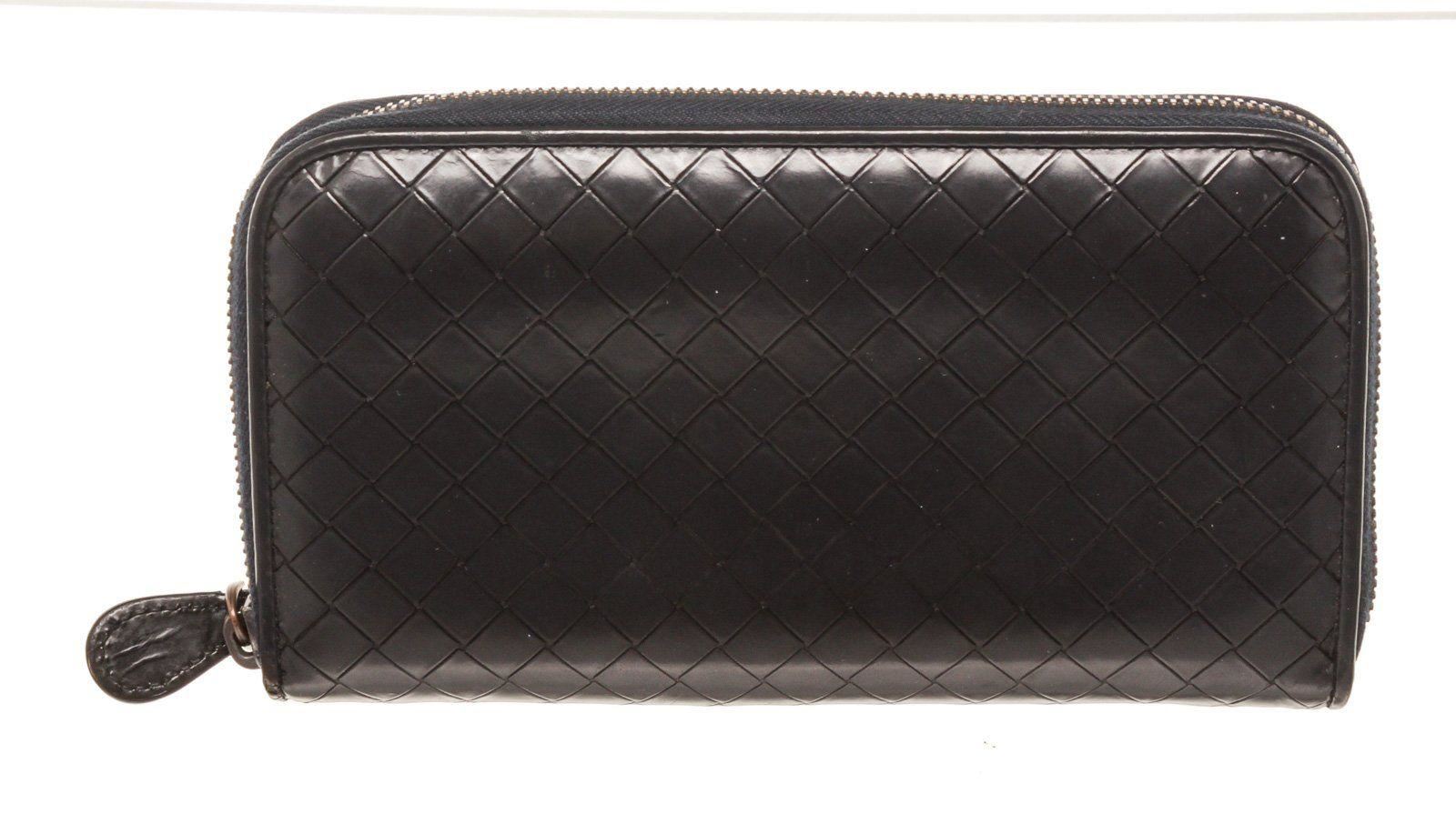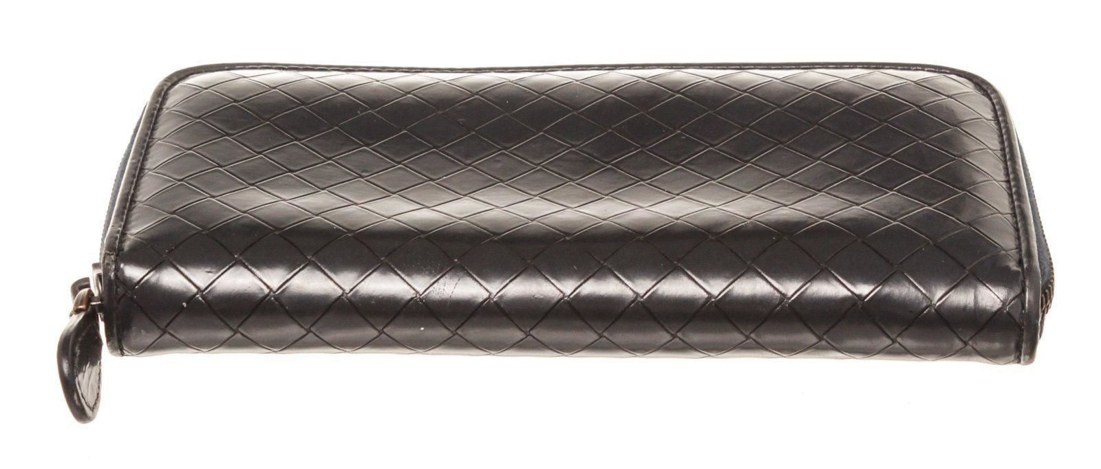 Bottega Veneta Black Leather Zippy Wallet with material leather, gold-tone hardware, trim leather, interior zip pocket, leather lining and zipper closure.