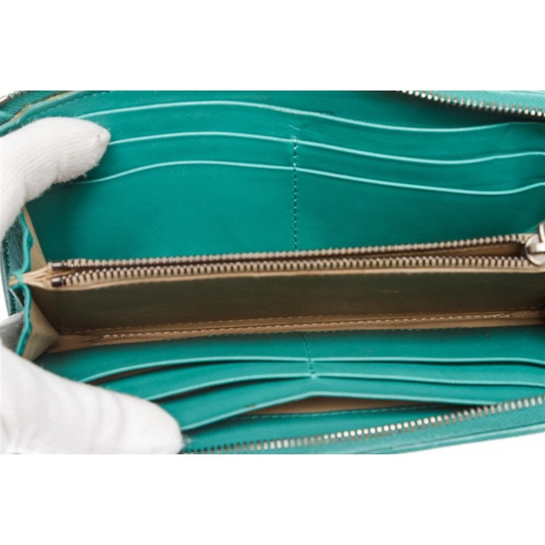 One Bottega Veneta Green Woven Leather Zip Long Wallet. Crafted out of green woven leather and silver hardware. Inner taupe leather lining, eight cardots, middle zip pocket divider, and double moneyip pockets. Item is pre-owned.