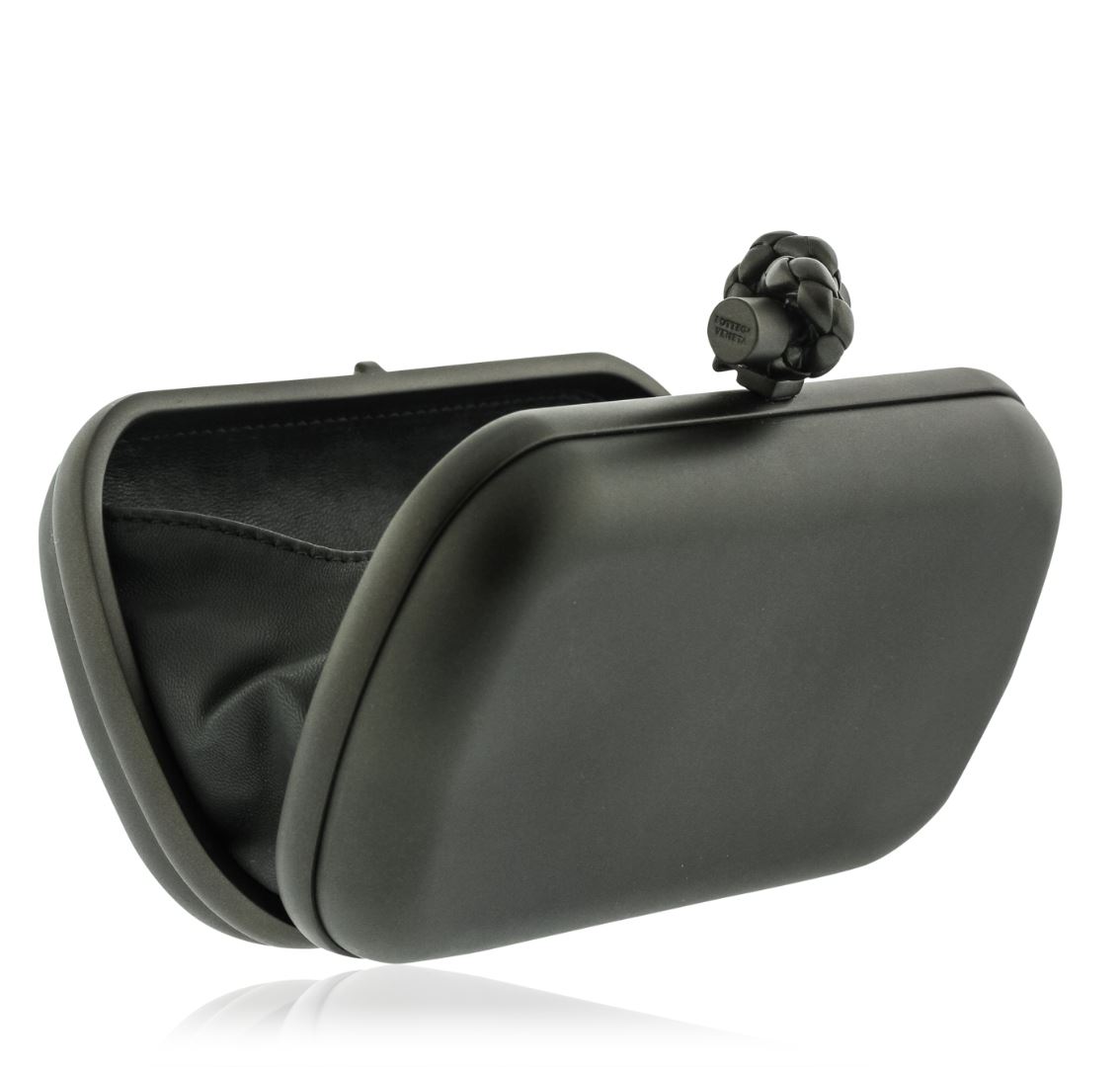 One Bottega Veneta mirror lense clutch featuring: Top clasp closure accented with rope knot and black leather lining. Includes tags and Bottega Veneta dust bag.