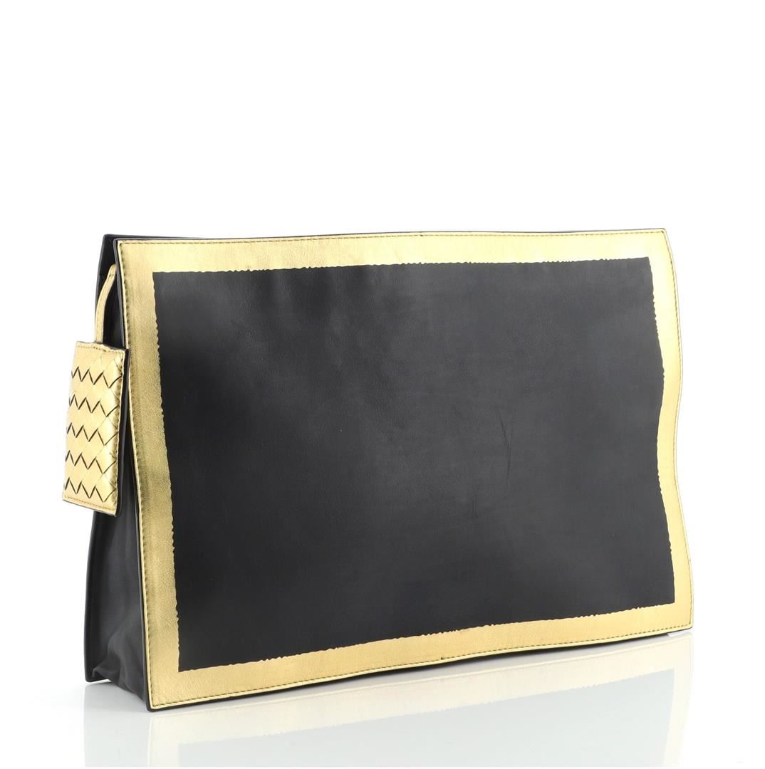 Bottega Veneta Zip Pouch Gilded Waxed Leather Large Black, Gold