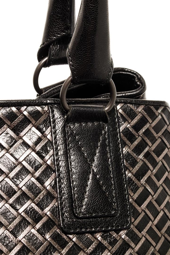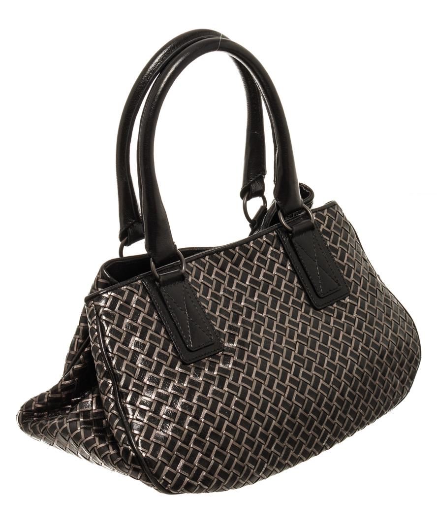 One Bottege Veneta Black Woven Open Shoulder. Item is sold AS-IS. All available information is listed in the description and shown in the photo. Bottege Veneta Black Woven Open Shoulder with top handle, canvas lining, zipper interior pockets, snap closure.