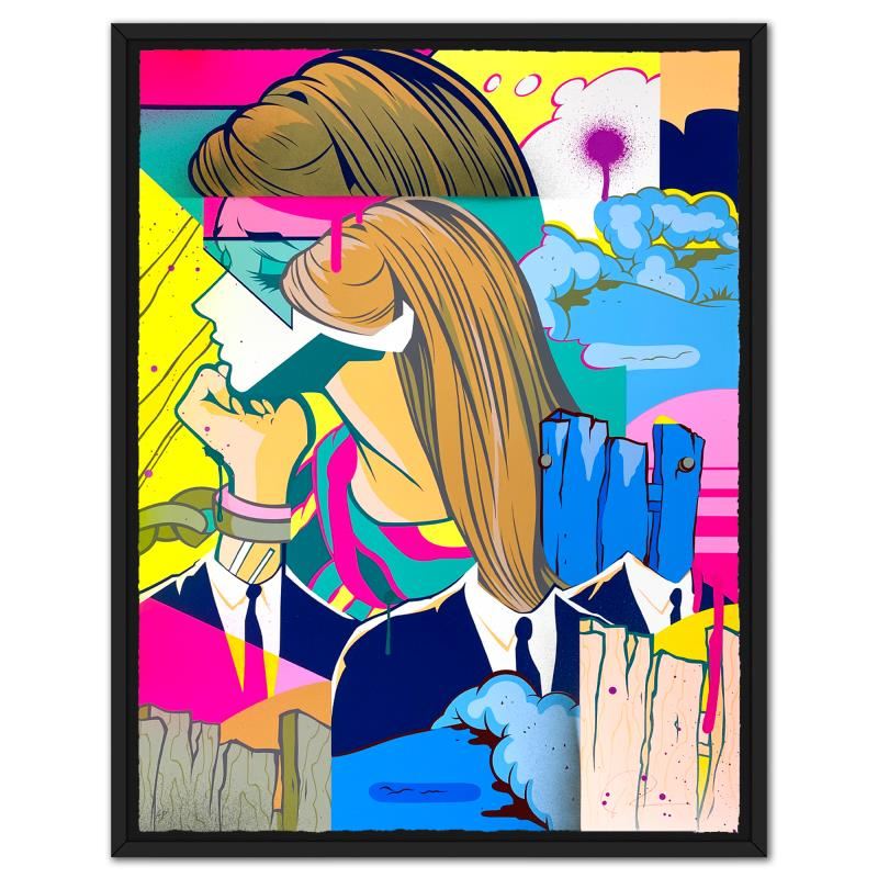 "Bound 2" is a hand embellished limited edition screen print Artist Proof on paper by POSE, hand signed by the artist. This piece is custom framed. Includes Letter of Authenticity. Measures approx. 34" x 27" (frame), 30" x 23" (image).