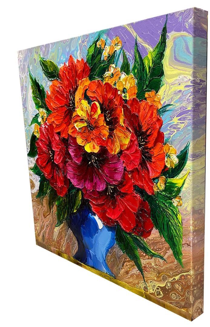 Brilliant original acrylic on canvas. Hand signed by artist. This artwork comes gallery wrapped. Approximately 20x20 inches